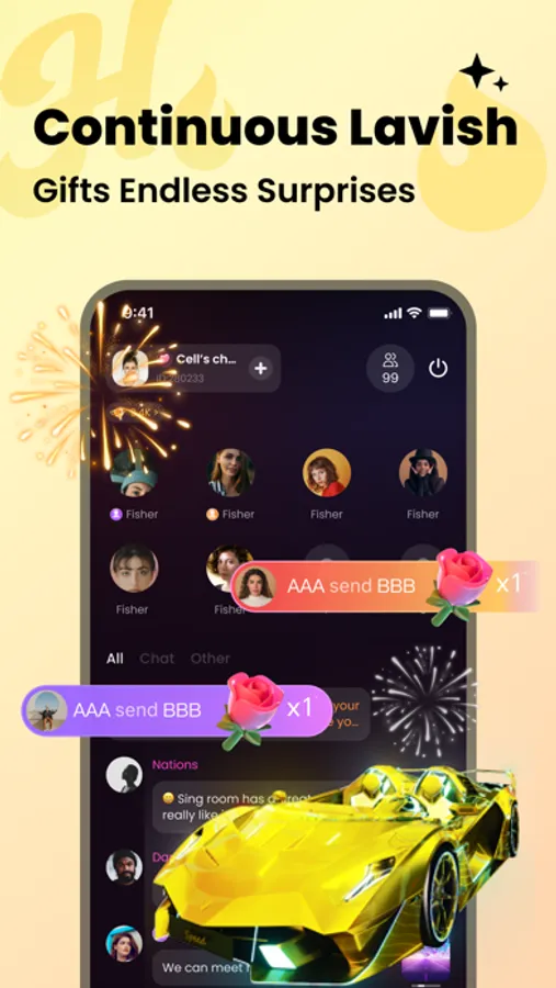 Join or create your own voice room where you can sing, play games, chat, and make new friends. Whether you want to show off your singing skills, challenge someone to a game, or simply have a heartfelt conversation—there’s a space for you. And guess what? You can trigger surprise gift bags in these rooms to spread joy and excitement to everyone!