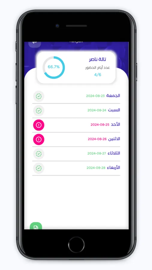 تطبيق **"حضور"** هو أداة ذكية لإدارة التفقد والحضور في المؤسسات التعليمية والشركات. يتيح التطبيق للمستخدمين تسجيل حضور الأفراد بسهولة ودقة من خلال واجهة بسيطة وسهلة الاستخدام. يمكن للتطبيق حساب النتائج ، مما يوفر إحصائيات شاملة حول نسبة الحضور والغياب.