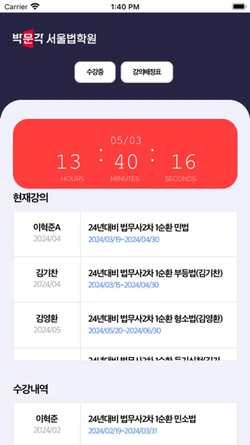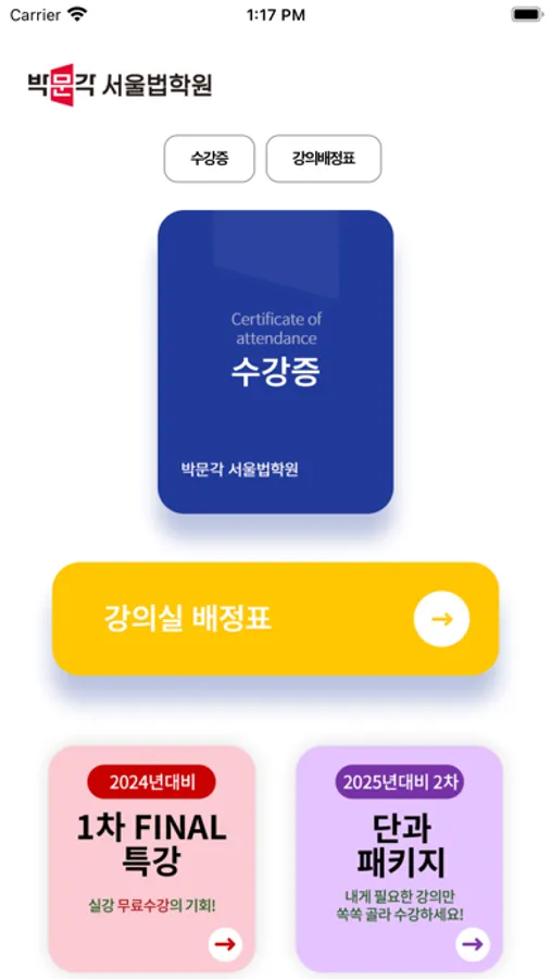 새롭게 준비된 된 박문각 서울법학원 수강생 전용 앱 입니다.