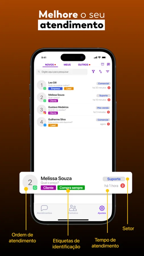 - Apenas um número de WhatsApp para vários atendentes e setores