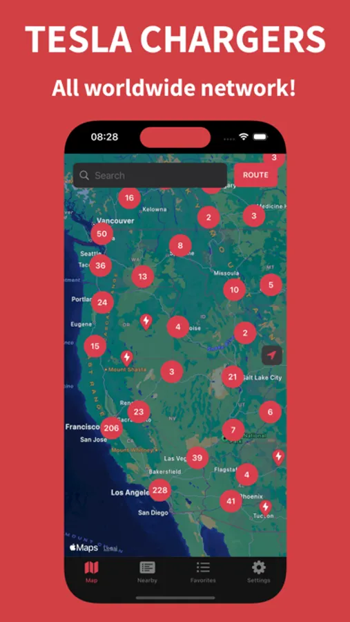 Easily find the nearest chargers for your car with "Chargers Map for Tesla". This app is designed to make your journeys smoother and more efficient by providing detailed information on Tesla superchargers worldwide.