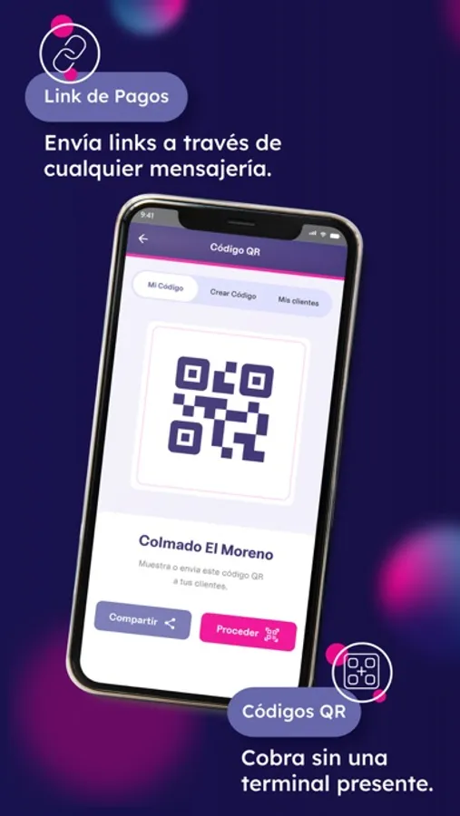 • Link de Pagos: Envía links a cualquier parte del país a través de WhatsApp, Instagram, email o cualquier otro sistema de mensajería que desees.