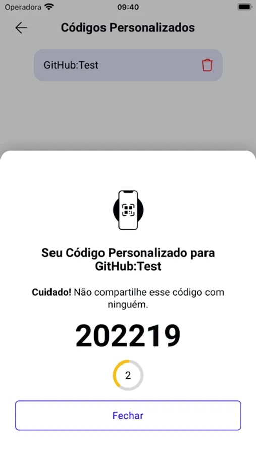Você também será capaz de adicionar outros fatores de autenticação, mediante QR Code de terceiros.