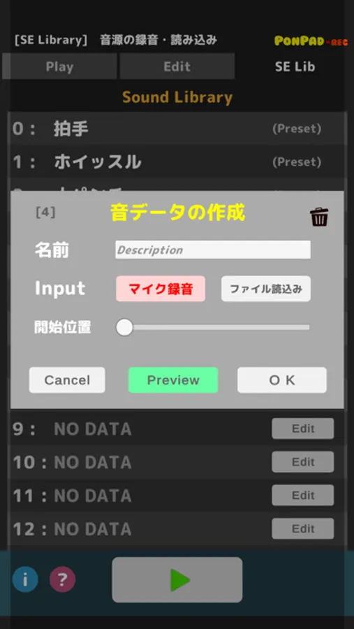 You can make your own sound effects by recording or by loading your chosen audio files from your iPhone.