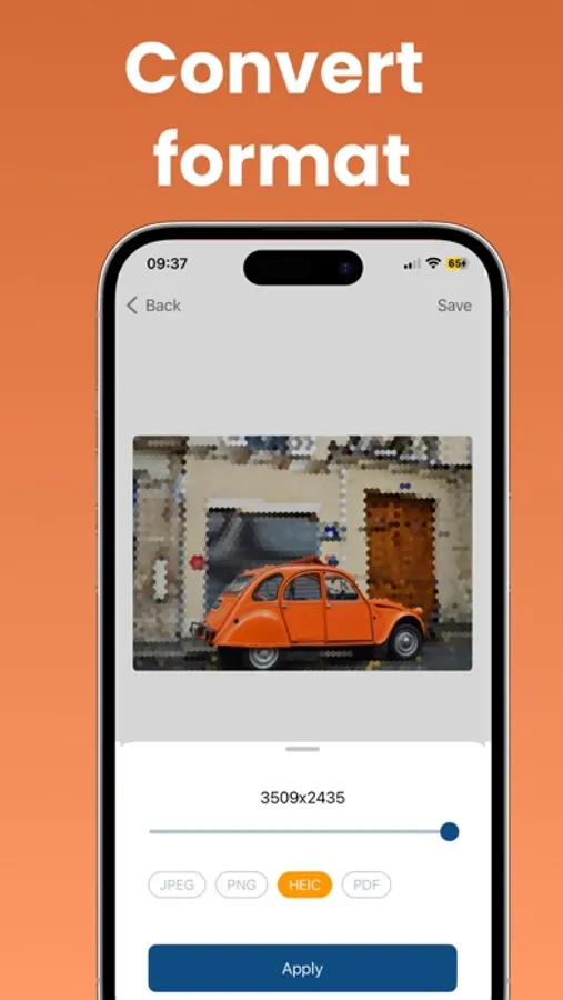 • Choice of file saving format: PNG, JPEG, HEIC or PDF