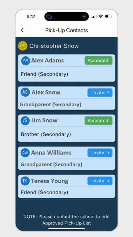 Enhanced Security: Benefit from the app’s robust security features that protect your child’s pick up permissions and your peace of mind.