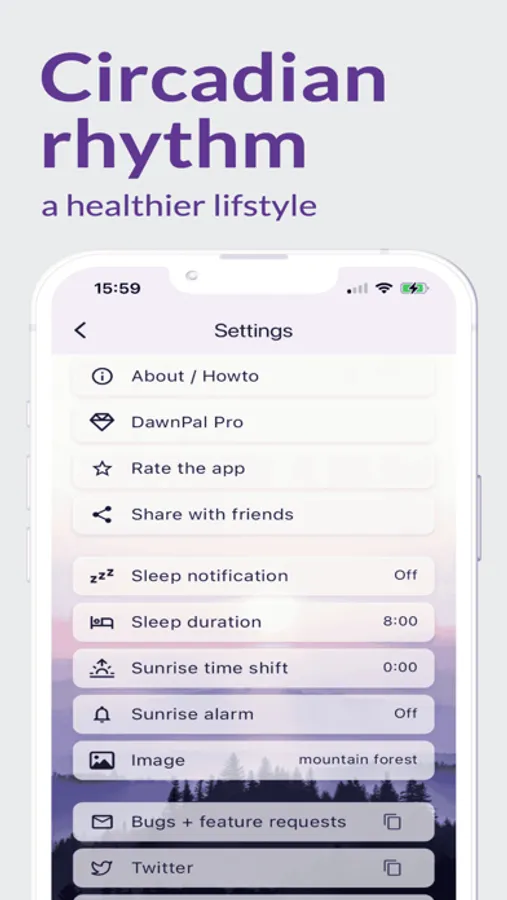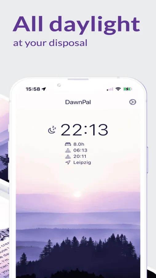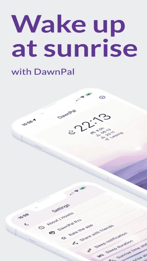 DawnPal detects your location to calculate sunrise time. It then calculates the ideal bedtime based on your sleep duration.