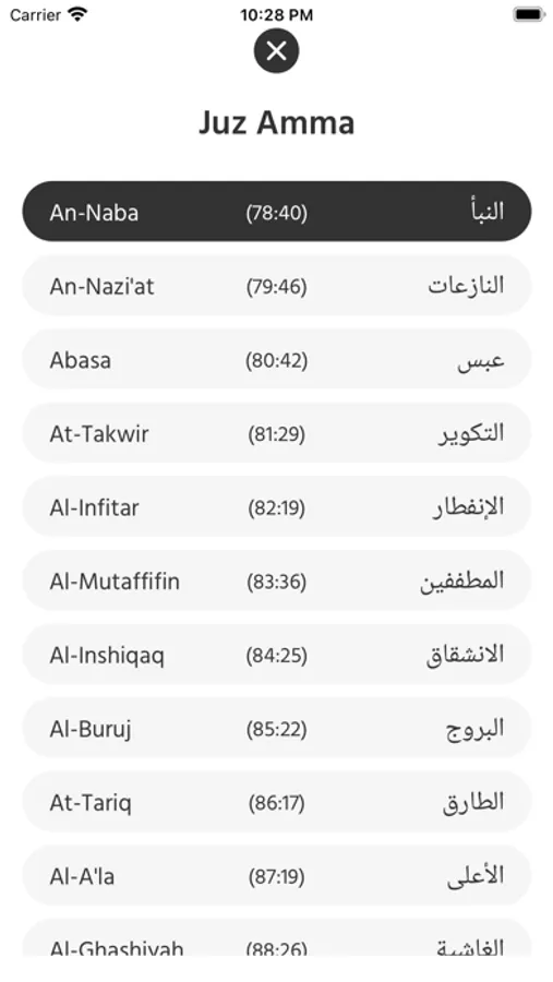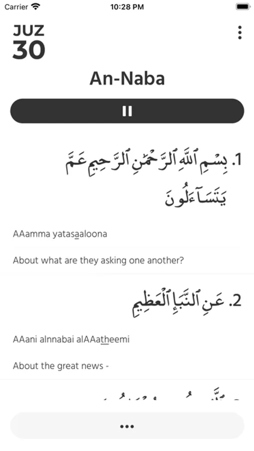 Experience the spiritual depth and beauty of the Quran with Juz30, your offline companion to the 30th part of the holy book. Dive into the profound verses of Juz Amma, comprising the last 37 chapters of the Quran, featuring concise and impactful messages that resonate with believers worldwide. Perfect for daily recitation, learning, and reflection, Juz30 App offers a user-friendly interface, audio recitations, translations, and transliterations, making it accessible to Muslims of all ages and backgrounds. Enhance your spiritual journey and strengthen your connection with the divine through Juz Amma refers to the 30th part of the Quran, which consists of the last 37 chapters (suras) of the holy book. These chapters are relatively shorter compared to others in the Quran and are often recited in daily prayers. Juz Amma covers a wide range of topics including faith, morality, guidance, and reminders about the Hereafter. Many of the chapters in Juz Amma contain verses that emphasize the importance of belief in one God, compassion towards others, and the consequences of one's actions in the afterlife. It's often recommended for Muslims, especially those who are learning to recite the Quran, to start with Juz Amma due to its shorter chapters and clearer language.