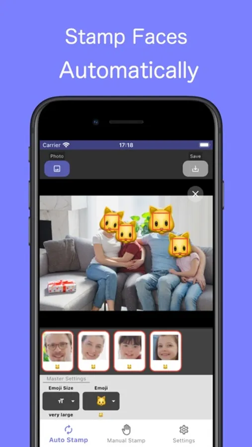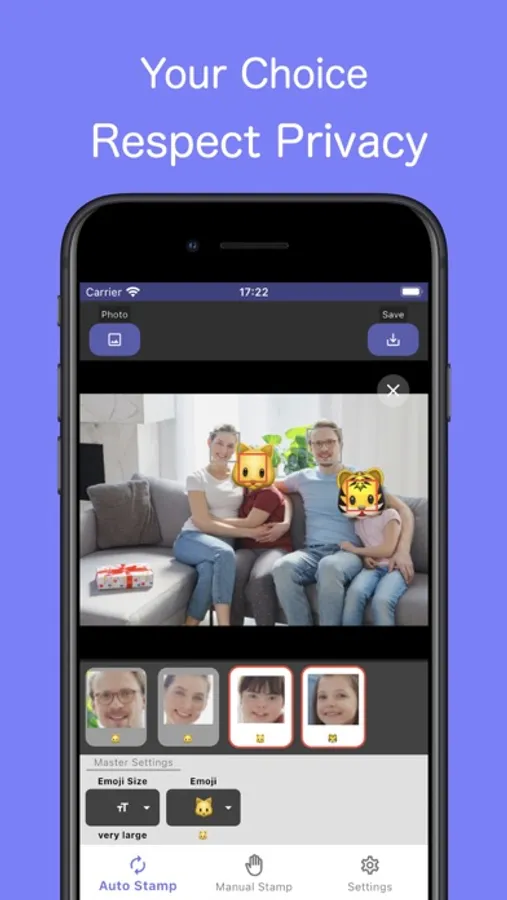 This app automatically detects faces and makes it easy to hide them with stickers.