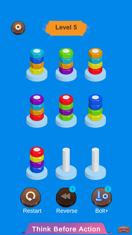 Sorting game where you sort colorful nuts and bolts on screws. Nuts bolt sort game is exciting & fun at the same time. Strategy is important part of play, so think before taking any action and before choosing the sort color.