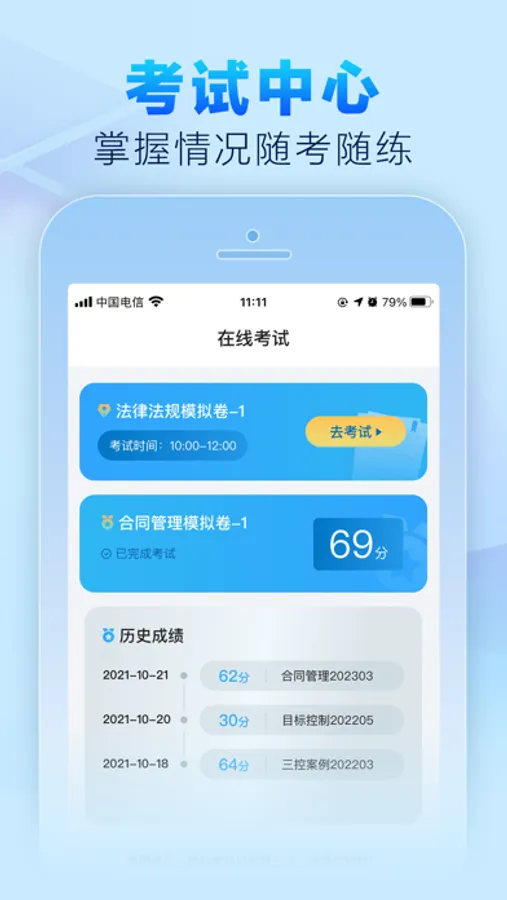 【百套题库智能分析】握在手中的题库,边学边练,十分钟也能轻轻松松做套题。超大型在线课后题库,包括章节练习、随机练习、自助练习、知识点测试等多种形式,让考生边学边练,达到进一步巩固学习效果的目的。提供考前模拟试题,帮助学员模拟实战,把握考试精髓,高效备战考试。