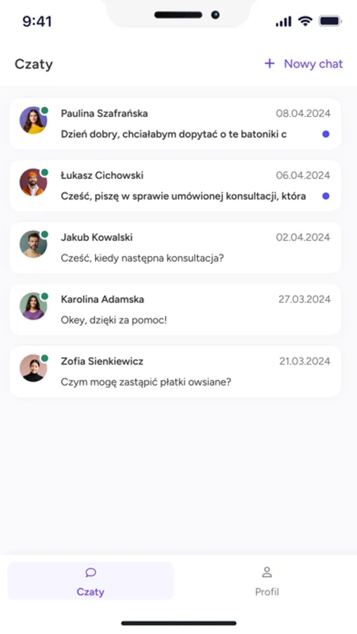 Alloweat mate to aplikacja mobilna umożliwiająca dietetykom korzystającym z alloweat kontakt ze swoimi klientami.
