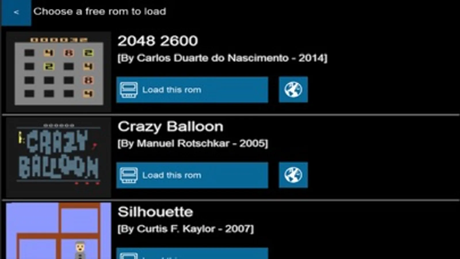 The app emulates A2600's graphics, sounds and peripherals to perfection, you can load your roms and play nostalgic videogames.