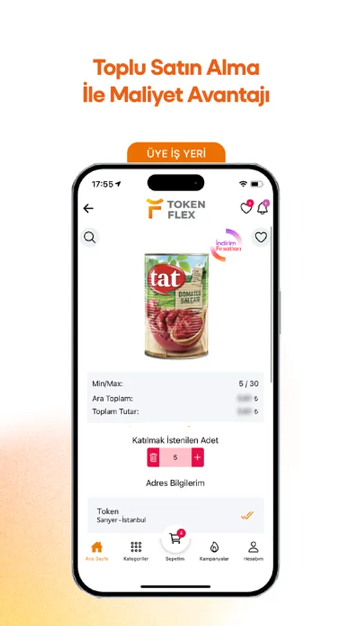 Tokenflex iş ortağı tedarik platformu, Tokenflex üye iş yerlerinin ihtiyaç duydukları malzemeleri indirimli olarak alabilecekleri, Tokenflex alacaklarını vadesini beklemeden kullanabilecekleri, B2B online ticaret platformudur.