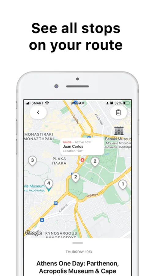 » See descriptions and photos of all stops on your route.