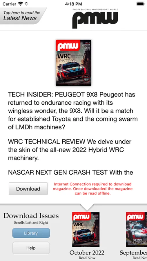Professional Motorsport World is available as a downloadable app for your tablet! Browse the latest issue online for free and be kept up to date with the latest news from the industry.