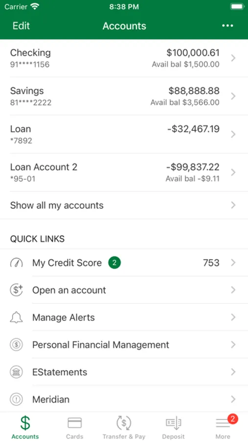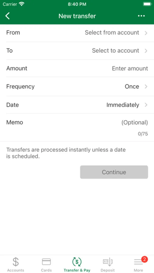 • Transfer funds between accounts