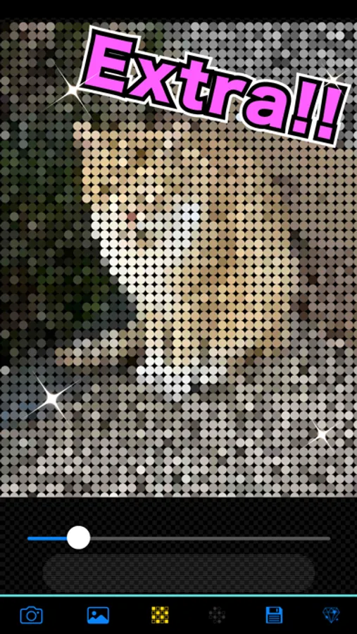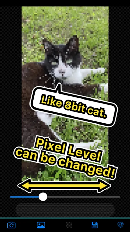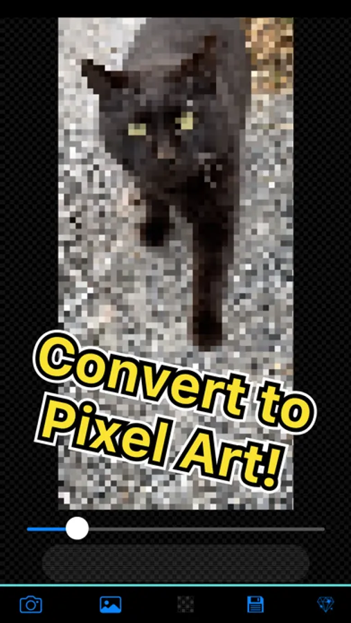 3. If you tap the convert button, pixel arts will be made in a few seconds, then you can check the pixel level using a slider.
