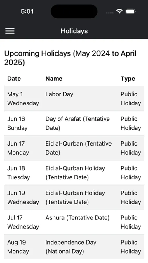 - Event and Holiday Listing: Stay informed about important events and national holidays with our comprehensive list, keeping you up-to-date with key dates and celebrations.