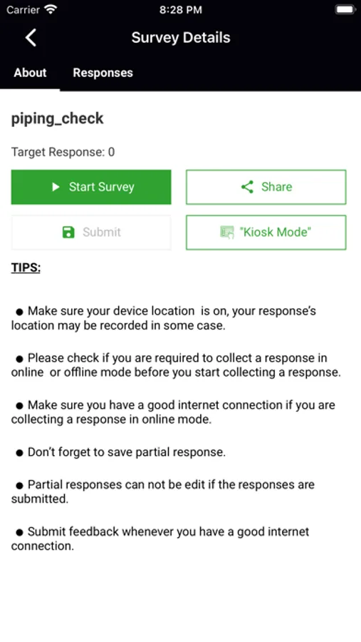 Use the kiosk mode to collect feedback in your stores, offices and other places. Once you place the app in kiosk mode, the app will automatically begin the same survey once previous response has been collected
