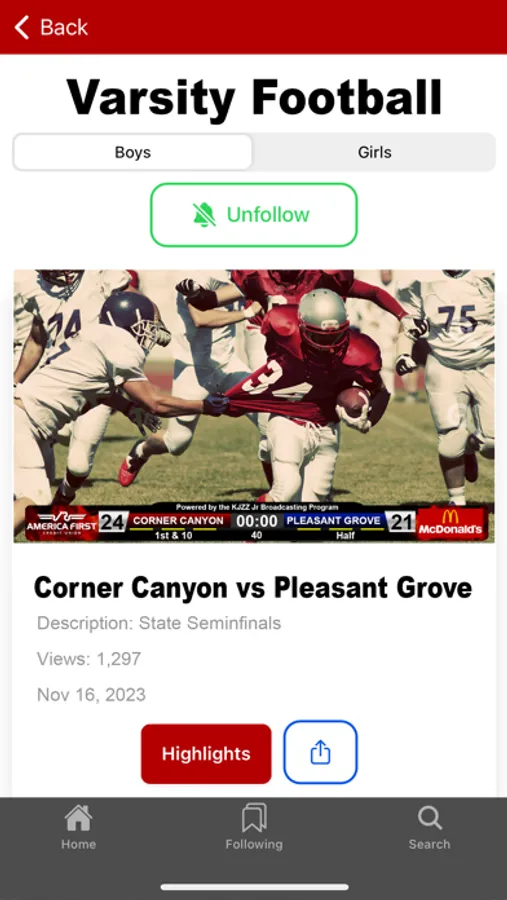 I used this to follow my favorite high school teams this year and it was so good! I love that I can view the full game and all the highlights after the game if I miss it.