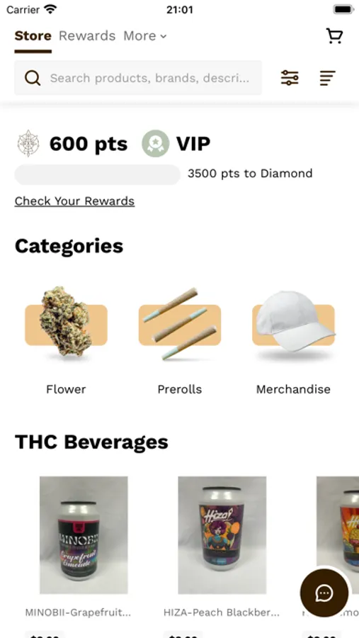 - Merch: Apparel, accessories, bongs, filters, papers, lighters, grinders