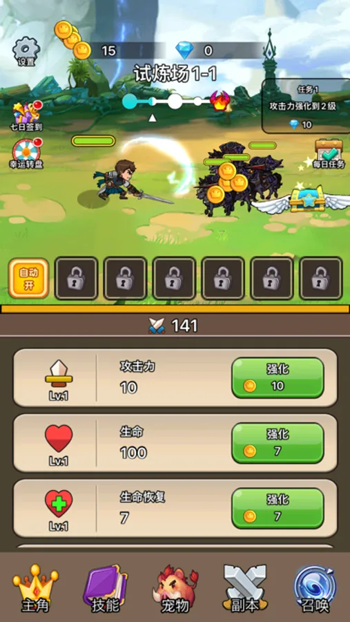 2. 副本:通过副本,你可以获得额外的金币、钻石、经验,用于升级你的技能、宠物以及英雄人物。