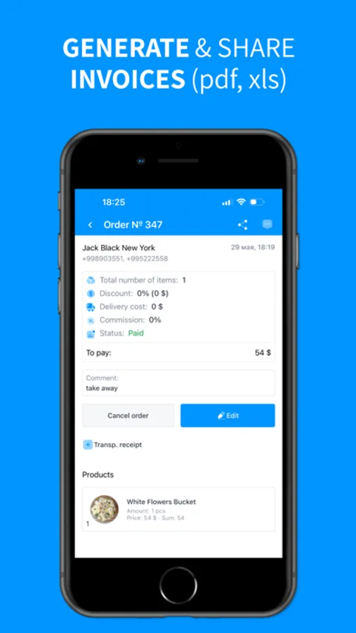 If you have a seller, install and log in on his phone and you will be able to control sales from anywhere in the world where there is a stable Internet connection. Control the history of order changes.