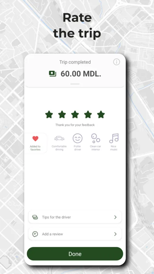 4. Accurate Fare Calculation: Always be informed about the cost of your trip, with prices calculated transparently and accurately before you confirm.