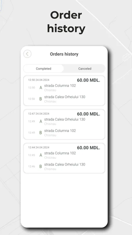 11. Order History: Access your travel history at any time to review details of previous rides.