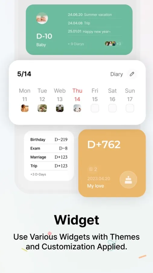 - Utilize a variety of widgets for different purposes, from D-Days to diaries.