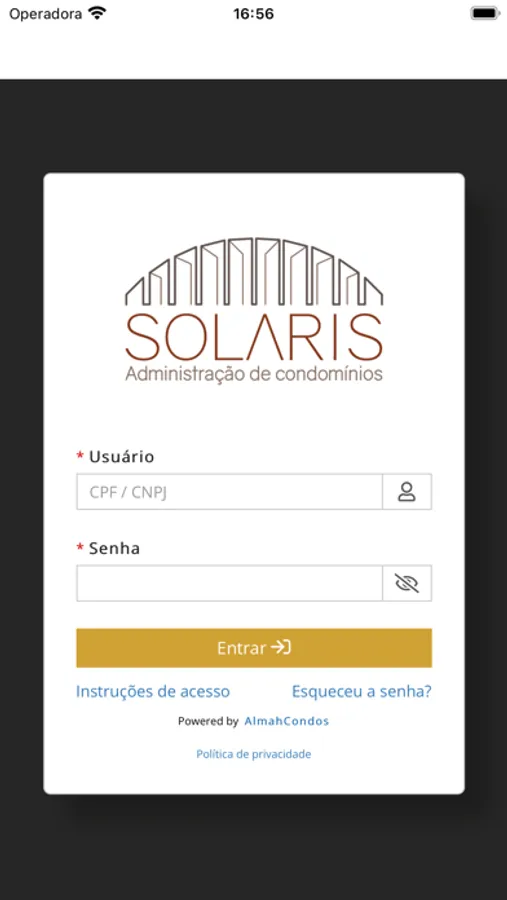Este aplicativo é exclusivo para usuários da Solaris Administração e Contabildiade.