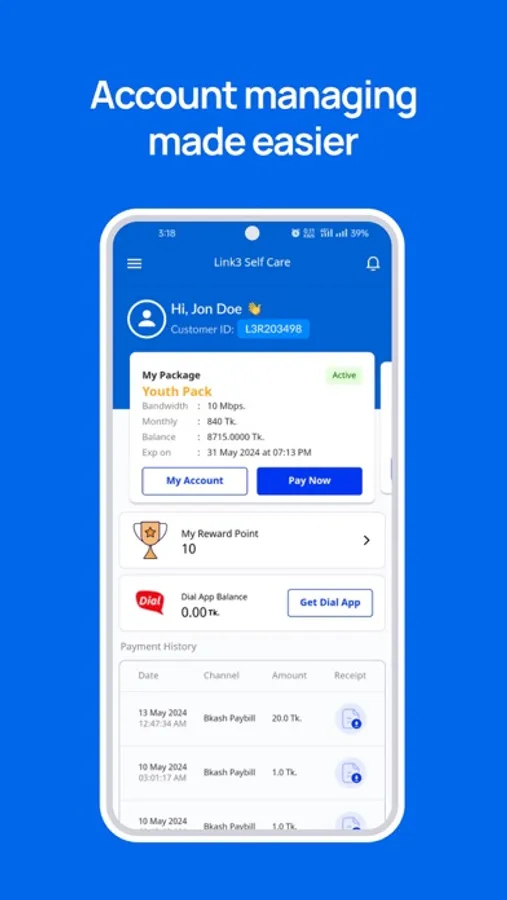 Link3's Selfcare application is your all-in-one application to serve all the needs being a part of the Link3 Family.