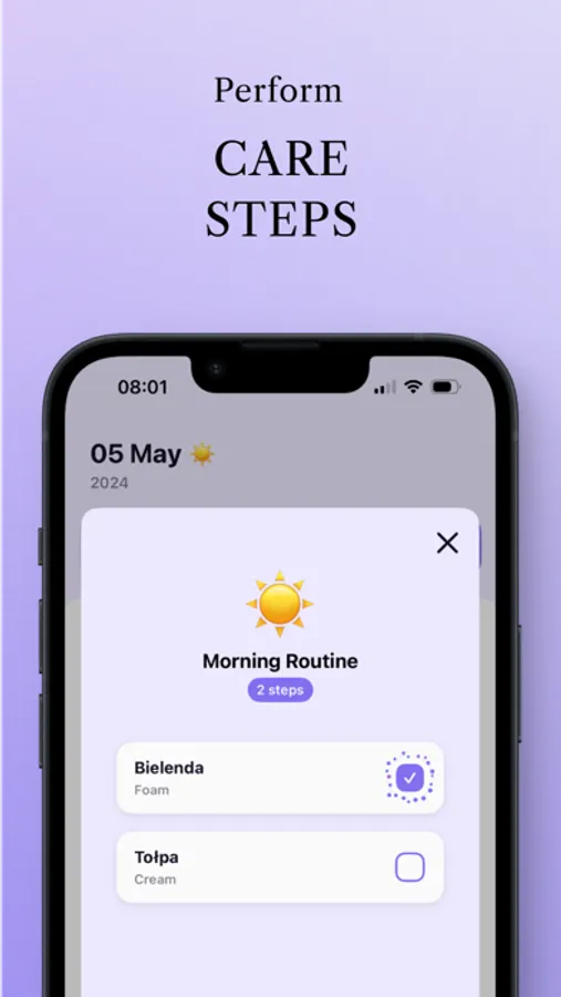 - Task Calendar: Track your daily skincare tasks with a convenient calendar view on the home page. Mark steps or entire tasks as completed.