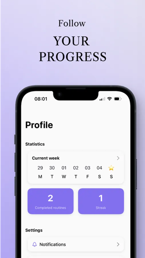 - Progress Tracking: Monitor your statistics to see how many consecutive days you have followed your plan and how many routines have been completed.