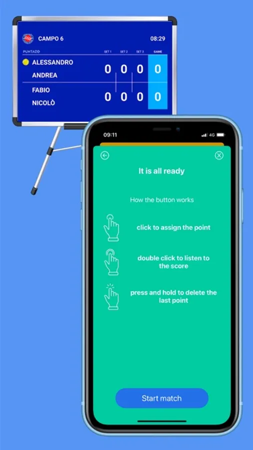 When you win a point simply press your Bluetooth button and the app will announce the updated score.