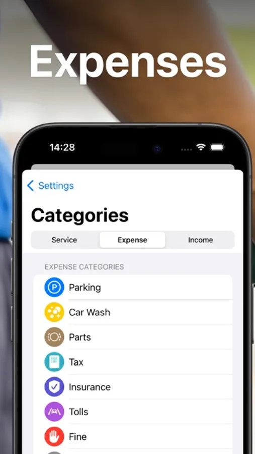 Track all vehicle expenses, including gas, service, parking charges, taxes, fines, etc.