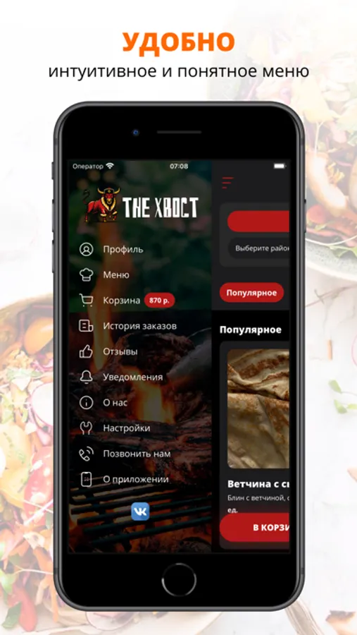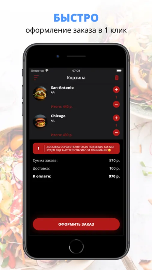 Скачивайте наше приложение, оформляйте заказ и наслаждайтесь любимой едой, где бы Вы ни были! Приятного аппетита!