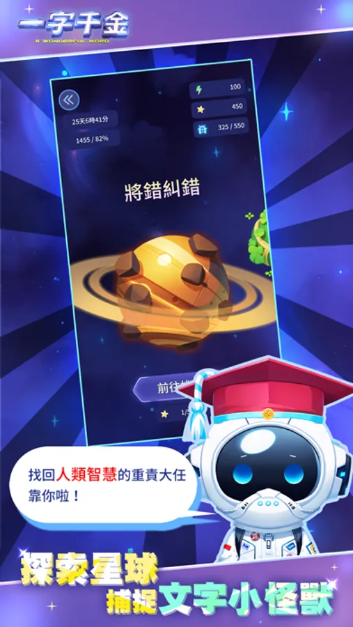 即刻出發~穿梭於宇宙之中,一邊提升中文能力、一邊把文字小怪獸們抓回來!