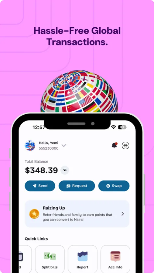 Effortlessly hold, receive, send, and manage USD and Naira. Enjoy seamless currency swaps and global transfers — right from your phone.