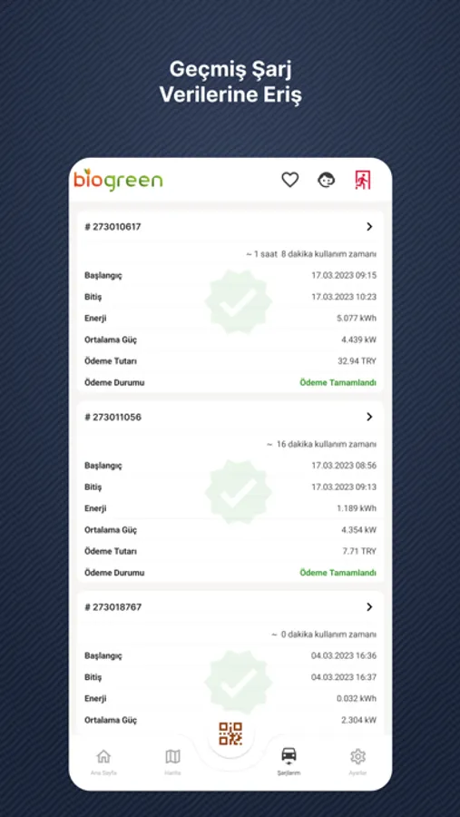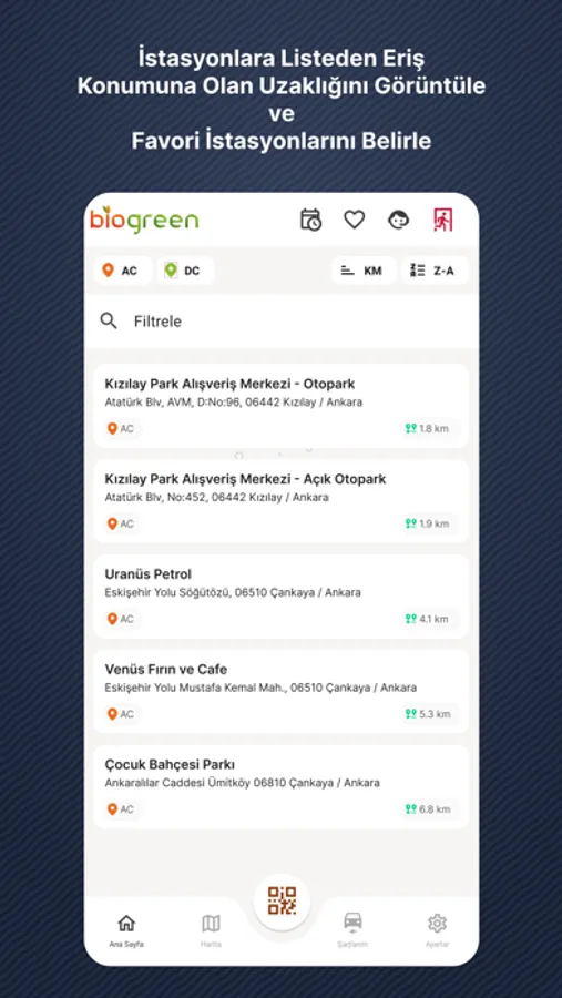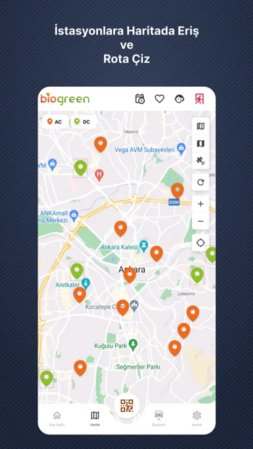BioGreen, elektrikli araç sürücüleri için hazırlanan mobil uygulamadır. Bu uygulama sayesinde şarj istasyonlarında şarj başlatabilir, istasyonların uygunluk durumlarını kontrol edebilir, harita üzerinden size en yakın şarj istasyonuna erişebilirsiniz.