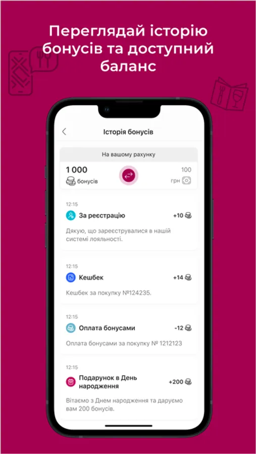 - Накопичуйте та розраховуйтесь бонусами замість грошей