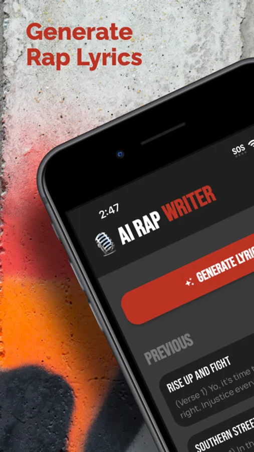Ever dreamed of writing rap lyrics like your favorite rapper? Now you can with AI Rap Lyric Writer, the mobile app that generates original, high-quality rap lyrics in seconds!