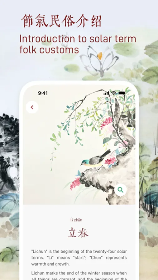 Our App clearly displays the dates of the 24 solar terms each year through the calendar. The origin of each solar term and related folk activities are introduced in detail. And there are relevant ancient Chinese written records to explain the relevant solar terms.