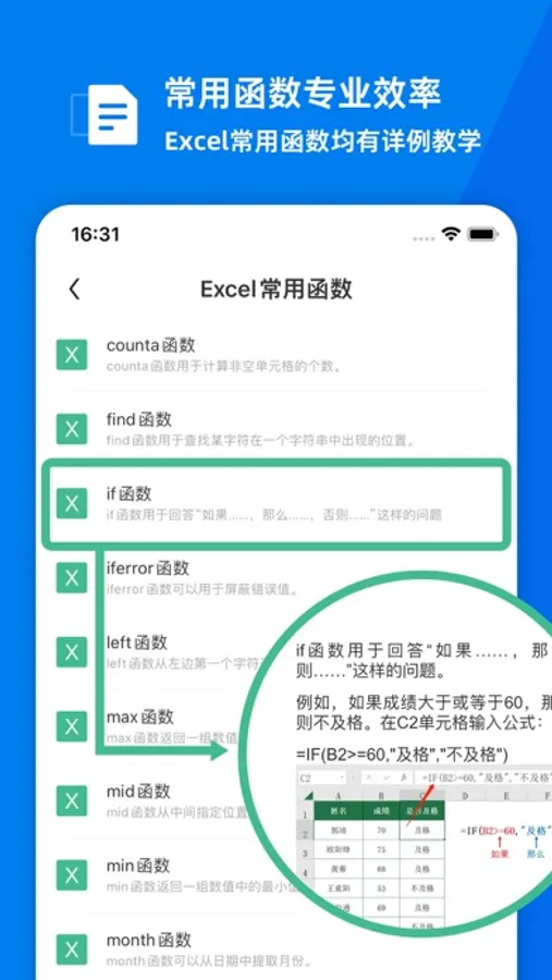 辅助工具:提供打印功能,以及excel常用函数。