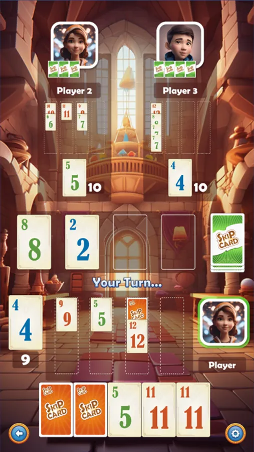 In the Skip Skip Solitaire card game, solitaire game players use skill and strategy to create a stack of sequence numbers. the wild card gives you more entertainment in this game. you can play this game with your friends and family also. there is also a solo-player game option available.