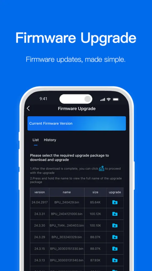 Additionally, the app provides real-time alert notifications to help you identify and resolve potential issues promptly. The firmware upgrade feature continuously introduces new functionalities or performance improvements, keeping your device running at its best.