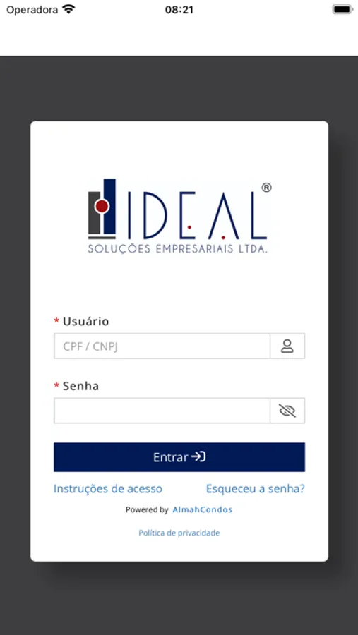 Este aplicativo é exclusivo para usuários da Ideal Soluções Empresariais.
