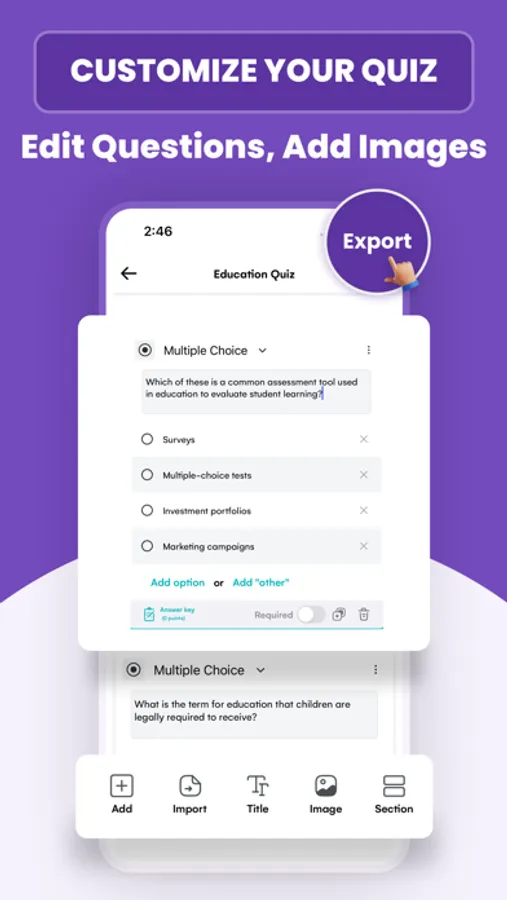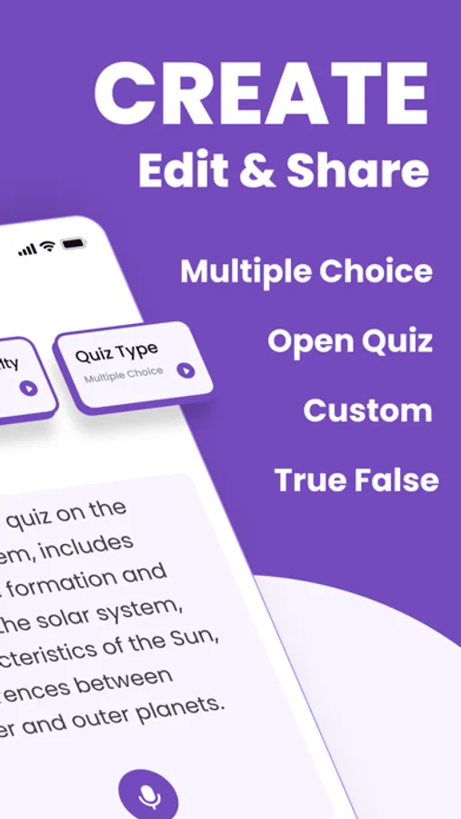 Quiz AI caters to all types of quizzes, whether you need true/false questions, multiple-choice options, or even image-based quizzes. The app's intelligent algorithms can transform any form or document into an interactive quiz, saving you time and effort. Simply upload your content, and let Quiz AI do the rest, converting your information into engaging and educational quizzes that can be used for studying, teaching, or testing knowledge.