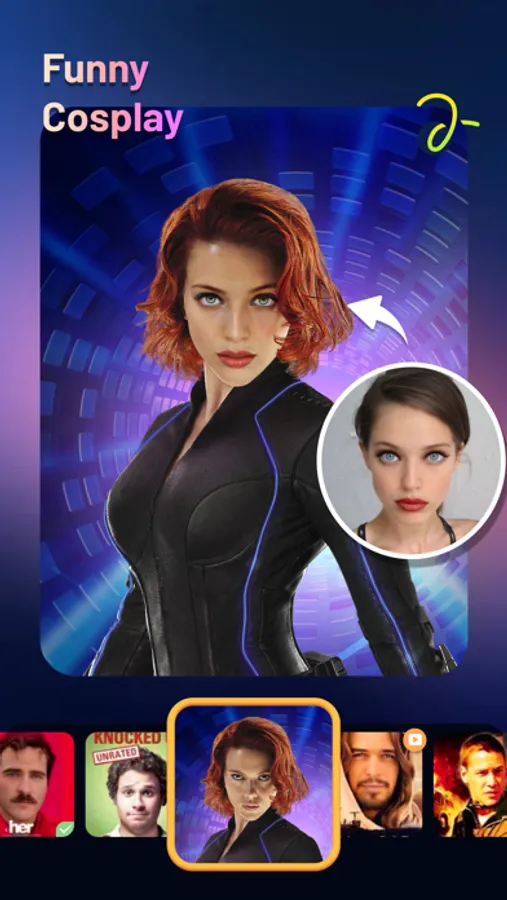 Celebrity Cosplay: Step into the shoes of your favorite movie stars! With Facelab, seamlessly transplant your face onto the characters' images from popular films and TV shows.